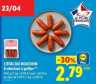 L'ÉTAL DU BOUCHER 8 chorizos à griller : offres et promos Lidl à découvrir
