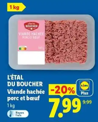 Actuellement en offre chez Lidl : L'ÉTAL DU BOUCHER Viande hachée porc et bœuf ✅ Valable du 9-04 au 15-04.