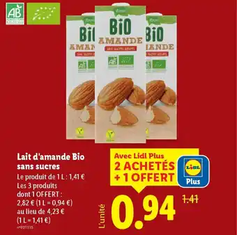 Lait d'amande Bio sans sucres offres et promotions en ligne chez Lidl