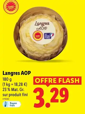En plus de l'offre Langres AOP, Lidl propose une large gamme de produits. Consultez le Catalogue Lidl hebdomadaire pour découvrir les meilleures offres et promotions. En plus de Langres AOP, il y a aussi : Aop, Aop prieres & Cantal AOP.