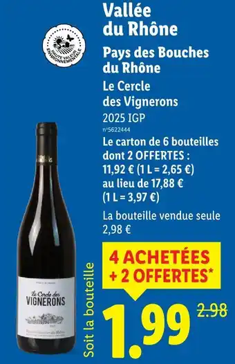 Le cercle des vignerons vallée du rhône pays des bouches du rhône 2025 igp : offres et promos Lidl à découvrir
