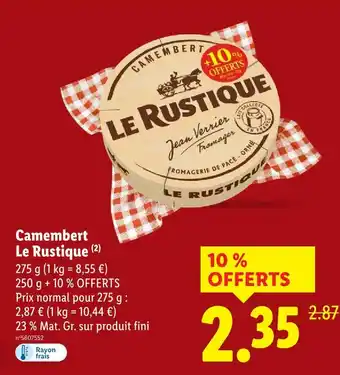 Actuellement en offre chez Lidl : Le rustique camembert ✅ Valable du 12-03 au 18-03.