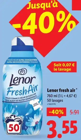 En plus de l'offre Lenor fresh air, Lidl propose une large gamme de produits. Consultez le Catalogue Lidl hebdomadaire pour découvrir les meilleures offres et promotions. En plus de Lenor fresh air, il y a aussi : LENOR Assouplissant, Lenor assouplissant & LENOR Assouplissant.