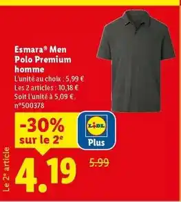 Actuellement en offre chez Lidl : Lidl - esmara men polo premium ✅ Valable du 26-02 au 2-03.