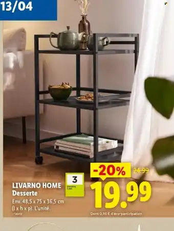 Actuellement en offre chez Lidl : LIVARNO HOME Desserte ✅ Valable du 13-04 au 16-04.