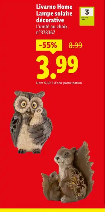 En plus de l'offre LIVARNO HOME Lampe solaire décorative, Lidl propose une large gamme de produits. Consultez le Catalogue Lidl hebdomadaire pour découvrir les meilleures offres et promotions. En plus de LIVARNO HOME Lampe solaire décorative, il y a aussi : LIVARNO HOME Lampe solaire décorative, Livarno home lampe solaire décorative - hibou & Lampe décorative mix.