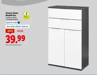 Le prix de l'offre LIVARNO HOME Meuble bas se trouve également en haut de la page, ainsi que la date à laquelle l'offre est disponible. Vous pouvez également vérifier les prix dans le Catalogue Lidl actuel ou sur le site Internet de Lidl. Les offres vous permettent d'acheter les produits Lidl au prix le plus bas.