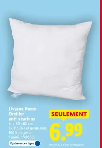 Actuellement en offre chez Lidl : Livarno home oreiller anti-acariens ✅ Valable du 27-12 au 2-01.