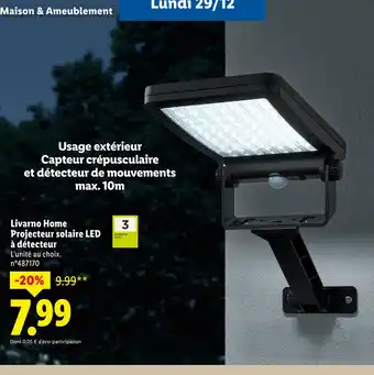 Offre Livarno home projecteur solaire led à détecteur chez Lidl