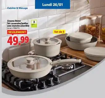 Y a-t-il une promotion sur Livarno Home Set casseroles/poêles avec manche amovible Le set. n°466713 la semaine prochaine chez Lidl ?