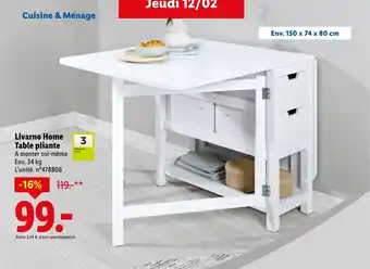 Actuellement en offre chez Lidl : LIVARNO HOME Table pliante ✅ Valable du 12-02 au 18-02.