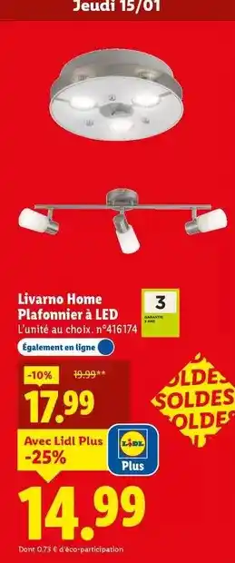 Actuellement en offre chez Lidl : Livarno - limano home plafonnier a led ✅ Valable du 15-01 au 19-01.