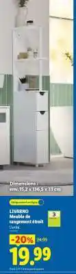 LIVARNO Meuble de rangement étroit bénéficie actuellement d'une réduction chez Lidl. Vous trouverez ici toutes les infos utiles sur les prix, la durée de validité et les conditions de l’offre. Pensez à consulter aussi d'autres offres et promotions similaires pour LIVARNO Meuble de rangement étroit afin d’acheter toujours au bon prix. La promo LIVARNO Meuble de rangement étroit est valable du 23-04-2026 au 29-04-2026. Offre terminée ? Pas de souci. D'autres offres sur ces produits sont peut-être déjà disponibles. Vous pouvez suivre cette catégorie de produits pour rester informé en cas de nouvelle promotion LIVARNO Meuble de rangement étroit chez Lidl. En comparant les offres, vous êtes sûr d’acheter au prix le plus bas possible.Questions fréquemment posées au sujet de LIVARNO Meuble de rangement étroit