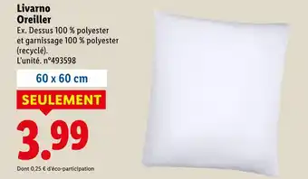 En plus de l'offre Livarno oreiller, Lidl propose une large gamme de produits. Consultez le Catalogue Lidl hebdomadaire pour découvrir les meilleures offres et promotions. En plus de Livarno oreiller, il y a aussi : Livarno - oreiller, Oreiller 3-en-1 & Oreiller 45×70cm.