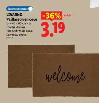 Actuellement en offre chez Lidl : LIVARNO Paillasson en coco ✅ Valable du 26-03 au 1-04.