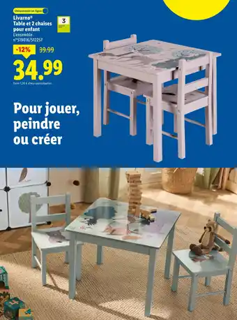 Livarno table et 2 chaises pour enfant : offres et promos Lidl à découvrir
