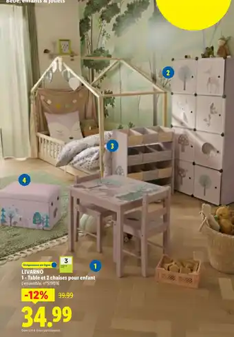 Offre Livarno table et 2 chaises pour enfant chez Lidl