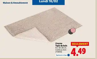 Actuellement en offre chez Lidl : LIVARNO Tapis de bain ✅ Valable du 12-02 au 18-02.