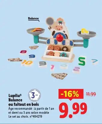 En plus de l'offre LUPILU Balance ou faitout en bois, Lidl propose une large gamme de produits. Consultez le Catalogue Lidl hebdomadaire pour découvrir les meilleures offres et promotions. En plus de LUPILU Balance ou faitout en bois, il y a aussi : Lupilu balance ou faitout en bois, LUPILU Puzzle en bois & Lupilu cuisine d'extérieur en bois.