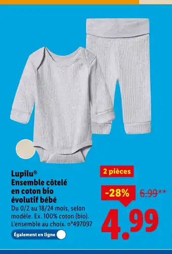 Actuellement en offre chez Lidl : LUPILU Ensemble côtelé en coton bio évolutif bébé ✅ Valable du 29-01 au 4-02.
