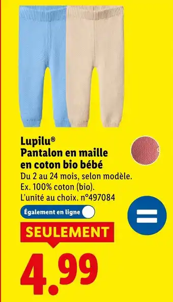 Actuellement en offre chez Lidl : LUPILU Pantalon en maille en coton bio bébé ✅ Valable du 29-01 au 4-02.