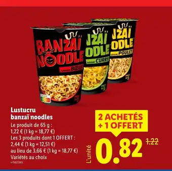 Actuellement en offre chez Lidl : LUSTUCRU banzai noodles ✅ Valable du 22-01 au 28-01.