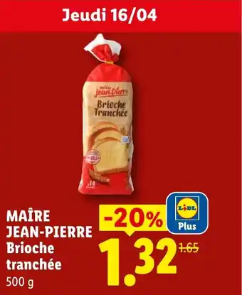 Actuellement en offre chez Lidl : MAIRE JEAN-PIERRE Brioche tranchée ✅ Valable du 16-04 au 22-04.