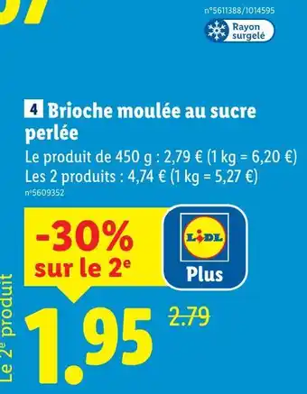 Le prix de l'offre Maitre jean pierre brioche moulée au sucre perlée se trouve également en haut de la page, ainsi que la date à laquelle l'offre est disponible. Vous pouvez également vérifier les prix dans le Catalogue Lidl actuel ou sur le site Internet de Lidl. Les offres vous permettent d'acheter les produits Lidl au prix le plus bas.