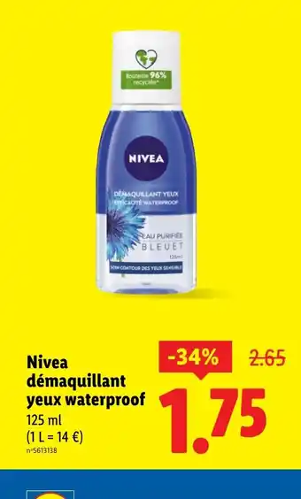 Offre NIVEA démaquillant yeux waterproof chez Lidl