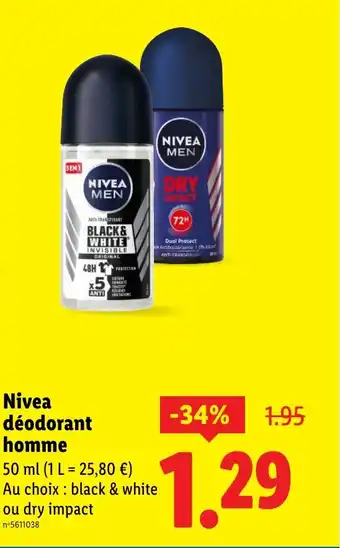 NIVEA déodorant homme offres et promotions en ligne chez Lidl