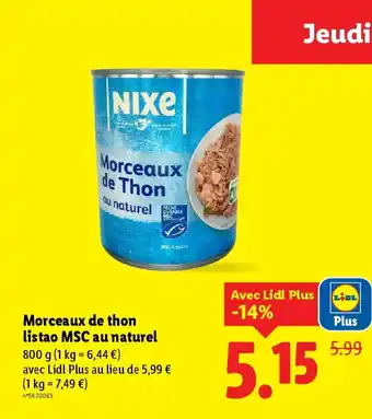 Y a-t-il une promotion sur NIXE Morceaux de thon listao MSC au naturel la semaine prochaine chez Lidl ?