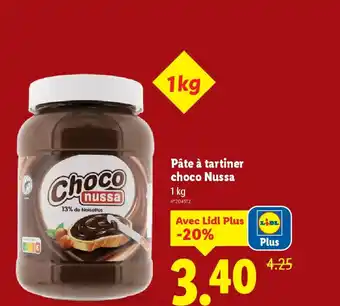 En plus de l'offre NUSSA Pâte à tartiner choco, Lidl propose une large gamme de produits. Consultez le Catalogue Lidl hebdomadaire pour découvrir les meilleures offres et promotions. En plus de NUSSA Pâte à tartiner choco, il y a aussi : Choco nussa pâte à tartiner, La pâte à tartiner & Pâte à tartiner nutella.