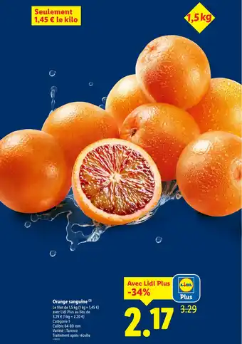 En plus de l'offre Orange sanguine, Lidl propose une large gamme de produits. Consultez le Catalogue Lidl hebdomadaire pour découvrir les meilleures offres et promotions. En plus de Orange sanguine, il y a aussi : Orange sanguine, Orange sanguine & Orange - maltaise.