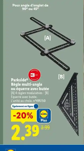 Y a-t-il une promotion sur PARKSIDE Règle multi-angle ou équerre avec butée la semaine prochaine chez Lidl ?