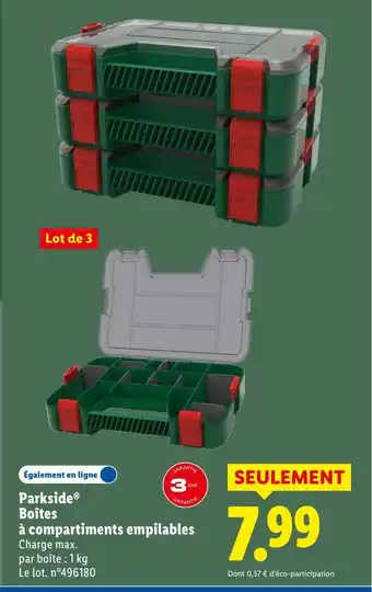 Actuellement en offre chez Lidl : PARKSIDE Boîtes à compartiments empilables ✅ Valable du 22-01 au 26-01.