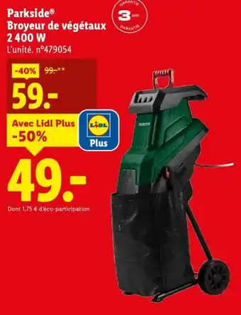 Actuellement en offre chez Lidl : PARKSIDE Broyeur de végétaux ✅ Valable du 8-01 au 14-01.