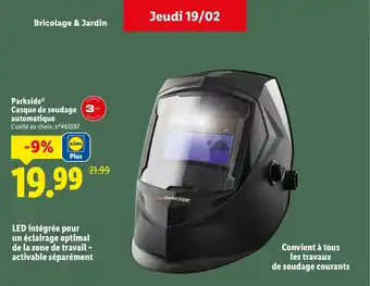 Actuellement en offre chez Lidl : PARKSIDE Casque de soudage (3 automatique ✅ Valable du 19-02 au 23-02.