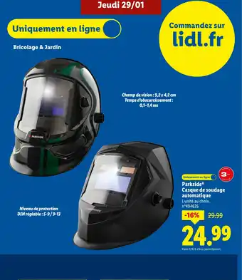 Actuellement en offre chez Lidl : PARKSIDE Casque de soudage automatique ✅ Valable du 29-01 au 4-02.