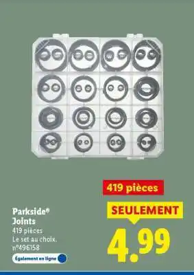 En plus de l'offre Parkside Joints, Lidl propose une large gamme de produits. Consultez le Catalogue Lidl hebdomadaire pour découvrir les meilleures offres et promotions. En plus de Parkside Joints, il y a aussi : PARKSIDE Joints, Parkside joints & Cillets avec joints.