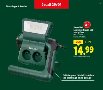 Actuellement en offre chez Lidl : PARKSIDE Lampe de travail LED avec prises ✅ Valable du 26-01 au 29-01.