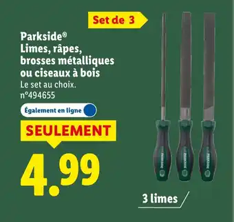 Actuellement en offre chez Lidl : PARKSIDE Limes, râpes, brosses métalliques ou ciseaux à bois ✅ Valable du 19-02 au 25-02.