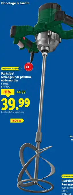 Y a-t-il une promotion sur Parkside mélangeur de peinture et de mortier la semaine prochaine chez Lidl ?