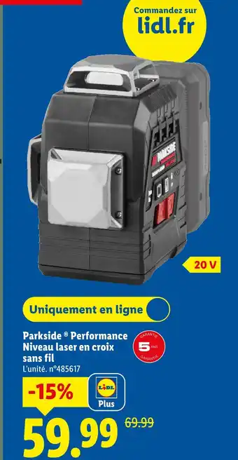 Actuellement, Parkside niveau laser en croix sans fil est en promotion chez Lidl. Toutes les informations utiles comme le prix, les conditions et la durée de validité sont affichées sur cette page. Consultez également les promotions similaires pour Parkside niveau laser en croix sans fil, afin de faire le meilleur choix. La promo Parkside niveau laser en croix sans fil est valable du 19-02-2026 au 25-02-2026. Si elle est expirée, regardez les autres offres équivalentes. Vous pouvez aussi suivre cette catégorie de produit pour être alerté lorsqu’une nouvelle promotion Parkside niveau laser en croix sans fil apparaît chez Lidl.Questions fréquemment posées au sujet de Parkside niveau laser en croix sans fil