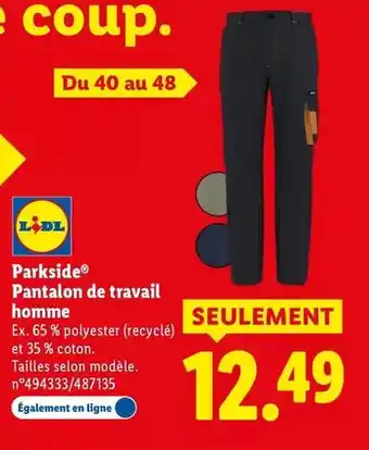 Offre Parkside - pantalon de travail homme chez Lidl