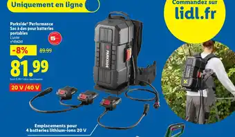 Actuellement en offre chez Lidl : PARKSIDE PERFORMANCE Sac à dos pour batteries portables ✅ Valable du 2-03 au 23-03.