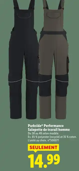 Y a-t-il une promotion sur Parkside performance salopette de travail homme noir la semaine prochaine chez Lidl ?