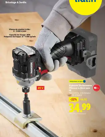 Le prix de l'offre Parkside performance visseuse à chocs sans fil se trouve également en haut de la page, ainsi que la date à laquelle l'offre est disponible. Vous pouvez également vérifier les prix dans le Catalogue Lidl actuel ou sur le site Internet de Lidl. Les offres vous permettent d'acheter les produits Lidl au prix le plus bas.