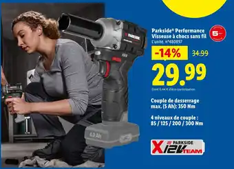 Actuellement en offre chez Lidl : Parkside performance visseuse à chocs sans fil ✅ Valable du 5-03 au 11-03.