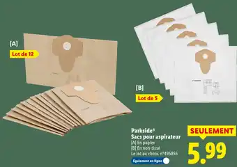 Actuellement en offre chez Lidl : Parkside sacs pour aspirateur ✅ Valable du 15-01 au 21-01.