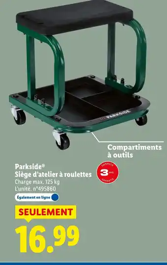 PARKSIDE Siège d'atelier à roulettes : offres et promos Lidl à découvrir